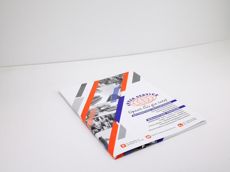 Η εταιρεία Ιnter service ειδικεύεται στην διαχείρης πολυκατοικιών, έκδοση κοινοχρήστων και στις ασφαλιστικές υπηρεσίες, τα χρώματα που αντιπροσωπεύουν την εταιρεία στα τιμολόγια που δίνει στους πελάτες είναι το pantone Blue 072 kai pantone Orange 021, θέλοντας να ενισχύση την επικοινωνία με τους πελάτες της μας ανάθεσε να δημιουργήσουμε ένα φόλντερ (φάκελο) για παραδίδει τα έγγραφα έγγραφα στους πελάτες της.